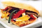 Skär squash, aubergine och urkärnade paprikor i avlånga bitar. Anpassa storleken efter brödet, grönsakerna ska inte hänga utanför.