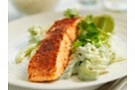 Lägg laxen i en ugnssäker form. Krydda med salt och peppar. Fördela tandoorikryddan på laxen och sätt formen mitt i ugnen ca 15 minuter eller till en innertemperatur på 56°C.