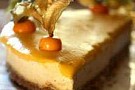 8. Låt kakan vila över natten eller 4-5 timmar innan servering. Dekorera med färska Inkabär, (physalis.)
