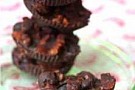 3. När allt är blandat, häll i de frysta blåbären och skeda i ca 2 matskedar i varje muffinform. Detta för att när de frysta blåbären kommer i chokladen börjar den snabbt att hårdna. Använder du färska bär kan du blanda i dem från början. De ska inte bli mycket högre än 2-3 cm. Ställ i kylen tills stela.