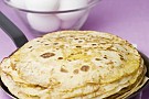 2 Grädda tunna pannkakor, lägg dem i en hög på ett fat.