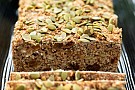 Sätt ugnen på 175 grader. Smörj en avlång form och strö på lite grahamsmjöl. Hacka dadlarna. Rör ihop alla ingredienser i en skål och lägg smeten i formen. Strö på pumpafrön och grädda längst ner i ugnen i ungefär en timme.
