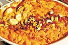 1. Sätt ugnen på 225°. Ta loss det grillade kycklingköttet från benen. Skär köttet i mindre bitar. Lägg bitarna i smord ugnssäker form. Krydda med salladskryddan. Skala och skiva bananerna. Lägg bananskivorna ovanpå kycklingen.