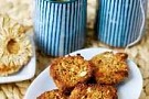 3. Skär 1 cm tjocka skivor och lägg dem på en plåt med bakplåtspapper. Grädda i ca 7 minuter. Servera kakorna med gott te och torkad frukt