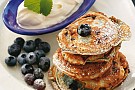 3. Smaksätt matlagningsyoghurt med lite florsocker och vaniljsocker och servera blåbär och yoghurt till de varma plättarna.