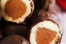 1. Skär nougaten i 30 lika stora bitar. Rulla dem till kulor och låt