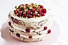21. Toppa tårtan med ett lager grädde samt hallon och hackade pistaschnötter.