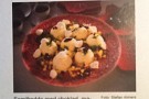 5. Hacka chokladen till garnering. Lägg ut semifreddon på ett uppläggningsfat ca 15 min före servering. Klicka på salsan och garnera.