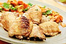 Grilla kycklingen i ca 15 minuter, vänd då och då och pensla hela tiden med hälften av mandusåsen.