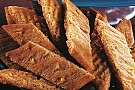 Låt kakorna svalna en liten stund på plåten. Skär dem i sneda bitar.