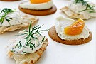 4. Bred osten på kavring, pepparkakor eller tunnbröd, lägg en halv aprikos på toppen.