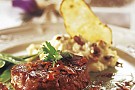 Stick ner potatisflarnen i moset vid serveringen och smula skinkan över kött och sås.