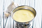 Vispa ihop gulor och citronsaft. Tillsätt oljorna droppvis under kraftig vispning. Smaka av med vitlök och salt.