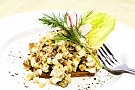 5. Tillsätt ägg, ansjovis, dill, gräslök, potatis, grädde och till sist kaviar. Rör om. Låt röran småputtra så att den får en lätt krämig konsistens.