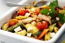 5. Strö över tomater och tärnad fetaost de sista 5 minuterna i ugnen, krydda med salt och nymalen svartpeppar