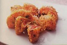 Blanda pankomjöl, persiljao och riven ost i en skål. Häll upp mjöl på ett fat och knäck ägget i en annan skål och vispa sönder. Ta tomatbitarna och vänd dem i mjöl, doppa därefter i ägget och vänd sedan i pankomjöl-blandningen.
