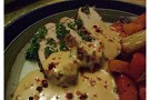 7. Krossa rosepepparkornen lite grann och rör ner dem i såsen.