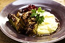 8. Servera kåldolmarna med rårörda lingon och steksky.