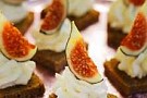 2. Skär varje kavringskiva i 4 bitar och spritsa eller bred på parmesancrèmen. Skölj och skär fikonen i tunna klyftor och lägg på toppen.