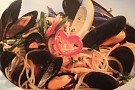 ”stängda”. Musslor med trasigt skal och de som inte stänger sig när de knackas i diskbänken kastas. Koka pastan enl förp. Hetta upp oljan i en tjockbottnad kastrull, fräs lök, vitlök och peperoncino på hög värme, lägg i vinet och musslorna. Koka musslorna under lock några min tills de öppnat sig. Vänd i pastan och smak-
