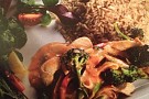 Stek ytterligare 1 minut. Tillsätt kokosmjölken och låt sjuda några min. Servera tillsammans med ris och sallad.