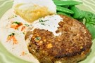 Fetafyllda färsbiffar med tomat och basilikagräddsås