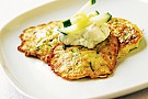 Stek plättar av smeten. Ät plättarna med färdig tzatziki.