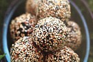 Mixa ala ingredienser förutom sesamfrön till en massa.
