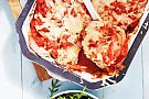 Servera den gratinerade korven med bulgur och ruccola. För alla Kolla ingredienserna i korven. I övrigt är rätten fri från laktos och ägg.