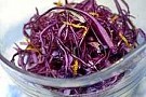 1. Strimla rödkålen fint, blanda med ett par nypor havssalt och lägg i press under tallrik med tyngd på i tio minuter.