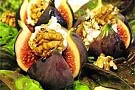 3. Lägg en valnöt på varje fikon och häll över dressingen.
