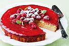 Garnera kakan med hallon. Servera gärna med en klick vispad grädde.