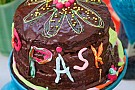 Bred chokladkrämen över tårtan och på sidorna. Ställ svalt och garnera tårtan före servering.