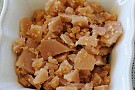 Låt svalna. Lägg den stelnade kakan i en plastpåse och bryt/hacka den i små delar med hjälp av en konserv eller annat hårt hjälpmedel.