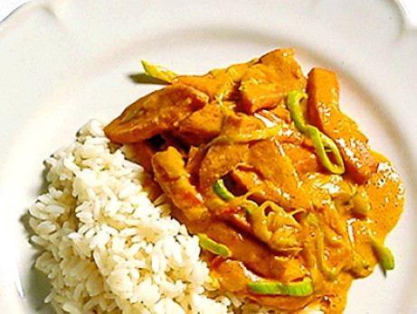 3. Häll på crème fraiche och rör ner tomatpurén. Låt puttra tills allt är genomvarmt.