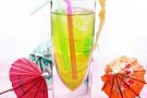 Blanda vodka och Midori i ett glas och häll på fruktsoda.