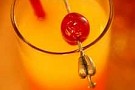 Dekorera med ett marachinokörsbär på en cocktailpinne.