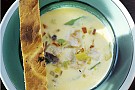 Skala och finhacka lök och vitlök. Strimla citrongräset. Fräs lök, vitlök, citrongräs och ingefära i olja på låg värme. Tillsätt buljong och låt koka några minuter. Strimla kycklingfiléerna smått och lägg i pannan/grytan. Häll i kokosmjölken och koka ytterligare några minuter tills kycklingen är genomkokt. Smaksätt med fisksås, lime och currypaste. Varmhåll i termos och ta med ett gott bröd. För alla Fri från gluten, mjölk och ägg, men kontrollera innehållet i buljongtärningen. Välj bröd som passar.