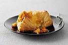 Sätt ugnen på 225°. Tina smördegen och kavla ut plattorna. Lägg en ostskiva på varje smördegsplatta, linda in och stäng ordentligt. Pensla med smör. Lägg de fyllda plattorna på en plåt och grädda cirka 15 minuter, eller tills smördegsplattorna fått fin färg. Servera som dessert tillsammans med varm hjortronsylt och lite vaniljglass.