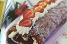2. Bred ut smeten i en bakpappersklädd långpanna. Grädda i 250 grader i 5 min. Vänd upp rulltårtan på sockrat papper och lossa bakplåtspappret försiktigt.