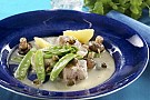 3. Blanda ned alla ingredienser utom apelsinerna i en gryta och låt alltsammans puttra i 20 minuter. Skär apelsinerna i klyftor att garnera med vid serveringen.