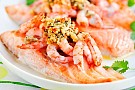 1. Lägg laxfilébitarna på ett smort ugnsfast fat.