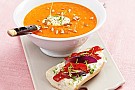 Sätt ugnen på 225°C. Skala och skär löken i klyftor. Dela, kärna ur och skär paprikorna i grova bitar. Skala och skär morot och palsternacka i stavar. Lägg lök, paprika, rotfrukter, körsbärstomater och oskalade vitlöksklyftor på en bakpappersklädd plåt. Ringla över olja. Krydda med timjan, salt och peppar. Blanda runt. Rosta mitt i ugnen 20–25 minuter. Lägg vitlöksklyftorna åt sidan. Mixa resten av det rostade med stavmixer eller i matberedare till ett slätt mos. Häll det i en kastrull. Tillsätt vatten och grönsaksfonden. Låt koka upp. Smaka av med salt och peppar. Späd ev med mer vatten. Kläm ut innehållet ur vitlöken. Mixa med crème fraiche till en slät röra. Smaka av med salt och peppar. Servera soppan med en klick vitlökscrème. Toppa med rostade solrosfrön och garnera ev med klippt krasse. En färskostsmörgås är gott till. För alla Fri från gluten.