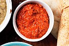 Sätt ugnen på 250ºC. Dela och kärna ur paprikorna. Lägg dem med skalsidan upp på en bakpappersklädd plåt. Grilla mitt i ugnen ca 15 minuter tills skalen börjar bli svarta. Lägg paprikorna i en skål och täck med en tallrik. Låt stå ca 15 minuter. Låt svalna och dra av skalen. Mixa paprikorna med valnötter paprikapulver och olja med stavmixer eller i matberedare. Krydda med salt och peppar. För alla Fri från gluten, laktos, mjölkprotein och ägg.