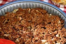 5. Bred över röran och grädda mitt i ugnen i 15–20 minuter. Servera med en klick vaniljkesella.