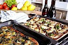 1. Pizzadeg Värm ugnen till 250 grader. Tips! Använd matberedare så är det lätt att se när degen är klar. Slå ihop jäst, honung och salt med träsked till en jämn smet. Tillsätt sen ljummet vatten och blanda. 2. Häll nu i mjöl och olivolja. Blanda och tillsätt mjöl tills du får en jämn deg. Om du använder beredare är degen klar när den släpper från kanterna i skålen. 3. Arbeta gärna degen en stund efter det att den blivit jämt. Täck sedan över skålen med en kökshandduk och låt jäsa i ca 30 min. 4. Mjöla nu ytan/skärbrädan där du ska kavla ut degen. 5. Fördela degen i 3 delar och kavla ut 3 pizzor (ugnplåtsstora), tillsätt hela tiden mjöl så att degen inte fastnar på varken på skärbrädan eller kaveln. Tips är att rulla in den färdigkavlade degen på kaveln och rulla sedan ut på ugnsplåten. 6. Skär bort överbliven deg från kanterna. 7. Häll ca 3 msk olivolja över degen och klappa ut den jämt med händerna över hela degen. Ställ in plåten i ugnen och låt grädda tills den är gyllenbrun och knaprig. 8. TomatsåsLägg i olivolja, lök, vitlök och sardellerna i en kastrull. Värm under omrörning. 9. Rör om tills sardellerna helt smält bort och låt sedan stå och sjuda en stund under omrörning. Häll nu itomatpurén och låt rosta tillsammans med de övrig ingredienserna. 10. Tillsätt krossade tomater och låt sjuda några minuter under omrörning. 11. Till sist lägger du i honung, svartpeppar och salt. 12. Låt sjuda under omrörning till tomatsåsen blivit stabbig.(såsen ska ej var lös!) 13. Tomatsåsen ska spridas ut över de förgräddade pizzorna, på päron och chevre pizza ska tomatsåsen läggas ut i ett tunt lager. På de övriga två pizzorna lägger man ut rikligt med tomatsås. 14. SpenatpizzaBred ut rikligt med tomatsås över den förgräddade pizzan. 15. Använd olivoljan för att fräsa spenat, vitlök och salt i en kastrull. När spenaten sjunkit tillsättsolrosfrön, salt och peppar och låt sjuda en stund. 16. Häll och fördela spenatröran jämt över pizzan. 17. Hacka mozzarella och sprid ut det på spenatröran och häll sedan på oliverna. Till slut stänker du olivolja över hela pizzan. Grädda i ugn på hög värme tills pizzan fått en fin gyllenbrun färg. 18. Potatis- och rosmarinpizzaBred ut rikligt med tomatsås över den förgräddade pizzan. 19. Lägg ut ett heltäckande lager potatis över den förgräddade pizzan. Salta och peppra och riv av rosmarin och lägg över potatisen. 20. Strö över västerbotten ost och ringla olivolja över hela pizzan. Grädda pizzan på hög värme tills osten smält och fått en fin färg. 21. Chevre och päronpizzaBred ut ett tunt lager tomatsås över den förgräddade pizzan. 22. Lägg päronen så att det täcker hela pizzan. Lägg på chevre, strö hasselnötter och färskoregano, ringla till slut honung över hela pizzan. 23. Grädda i ugn på hög värme tills chevren smält och fått färg. Ta sedan ut pizzan från ugnen och ringla ytterligare honung över pizzan innan den serveras.