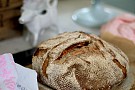 5. Häll upp degen på ett mjölat bakbord och forma till en limpa.
