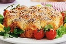 Lös upp jästen i lite av mjölken i en degbunke. Tillsätt resten av mjölken, oljan, osten och saltet. Tillsätt det mesta av vetemjölet och arbeta till en smidig deg ca 5 minuter. Täck degen med en bakduk och låt jäsa ca 1 timme. Tag upp degen på lätt mjölad bänk och arbeta den. Rulla ut degen till en längd och skär i 15 lika stora bitar (för 15 bitar). Forma dem till runda bullar. Lägg dem i en smord form med löstagbar kant ca 24 cm i diameter. Låt bullarna jäsa övertäckt ca 30 minuter. Sätt ugnen på 200° C. Pensla bullarna med uppvispat ägg och strö på vallmofrö. Grädda i nedre delen av ugnen i ca 30 minuter. Låt brödet svalna på galler.