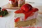 Once the cake is set, top with the 8 halved strawberries (or however many it takes to cover the cake), and then spoon some of the sauce over. Serve!
