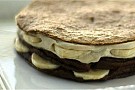 Slice fresh bananas. Place one crepe on plate, top with a layer of cacao cinnamon cream. Layer with fresh sliced bananas. Place another crepe on top of the bananas, spread vanilla cream on crepe, top with more sliced bananas and top with third crepe. These are very yummy, beautiful and good for you!